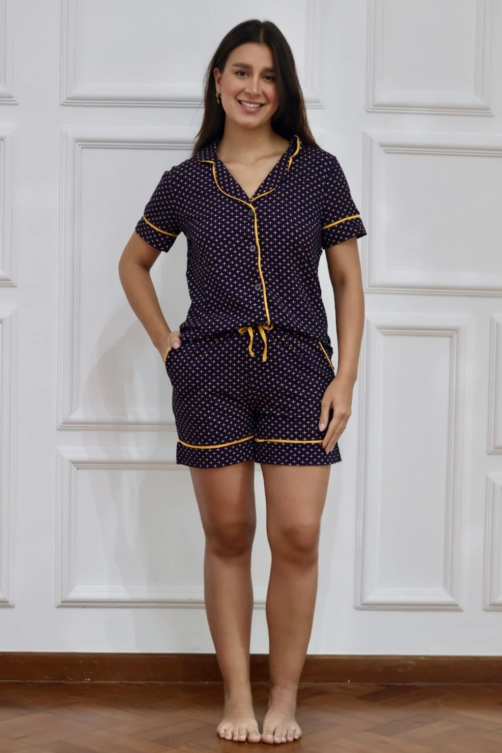 O pijama americano curto é a escolha perfeita para quem busca uma combinação de estilo e conforto durante as noites quentes.
