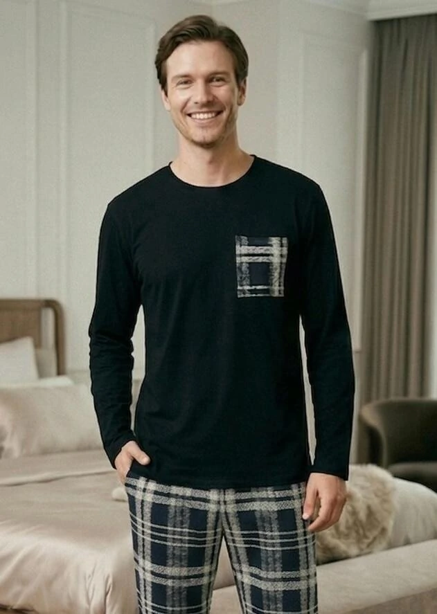 Nosso pijama masculino de manga longa traz uma modelagem clássica com toque moderno.