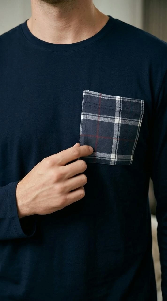 Nosso pijama masculino de manga longa traz uma modelagem clássica com toque moderno.